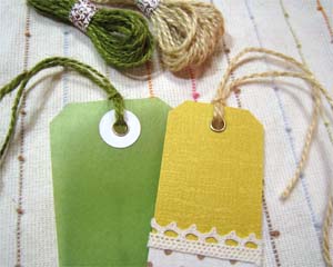 ザックリとした麻ならではの風合い。太さのある糸なので大きめのタグにぴったり。 |